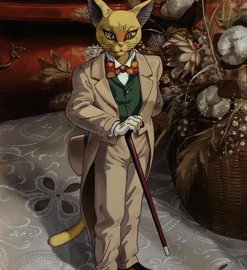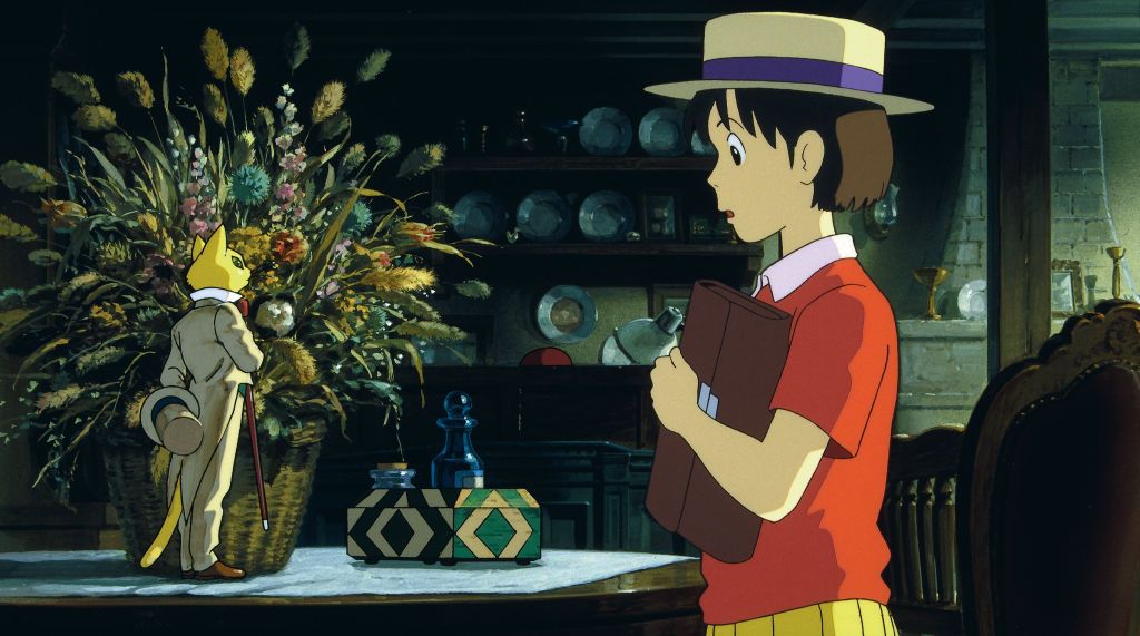Shizuku’s life takes a new turn, however, while she is riding the train around the city and encounters a large white cat with no apparent human owner. Intrigued by the stray cat, she follows it down various streets and alleys and ends up in an unfamiliar neighborhood, where she discovers an antique shop. The shop is run by a kindly old man, Mr. Nishi, who shares Shizuku’s fanciful cast of mind. The shop also contains a mysterious statue of an anthropomorphic, dapper cat whom Mr. Nishi calls “The Baron.”