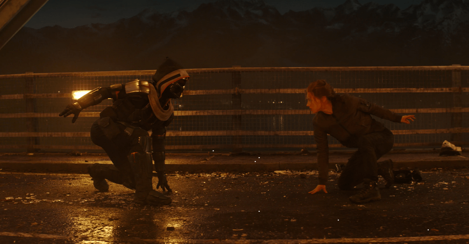In this scene, the plot demands that Dreykov lose his temper and lash out at Natasha. As written, though, I found the blow-up rather unconvincing. Dreykov seems implausibly easy to provoke with just a few insults. The moment’s awkwardness is only underlined by the fact that there is an alternative—and very dramatically and emotionally logical—way Natasha could provoke Dreykov. Yet playing the scene this way would highlight ugly aspects of Natasha’s character and past while giving at least a semblance of humanity to the villain. And Black Widow isn’t about to ruin a big crowd-pleasing showdown by introducing all that pesky moral and psychological complexity.