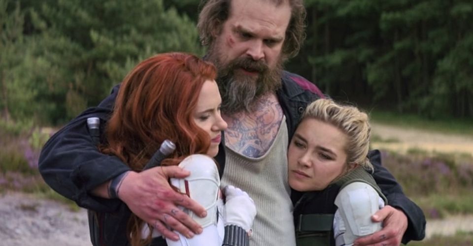 Yelena is a broadly similar character to Natasha, which is unsurprising given their common life experience and de facto sister status. However, perhaps because Yelena isn’t an Avenger and thus an established heroine, Pugh is free to play her as a darker, more damaged character. She is as deft at quipping as Natasha (and gets some of the movie’s best lines), but Pugh conveys the emotional deadness, even self-destructiveness, behind the humor. Yelena jokes in the face of danger not because she is an unflappable superhero but because she might not really care whether she survives. When she betrays vulnerability, these moments similarly have more of an emotional punch because we don’t know her character and thus aren’t sure of how level-headed and stable she ultimately is.