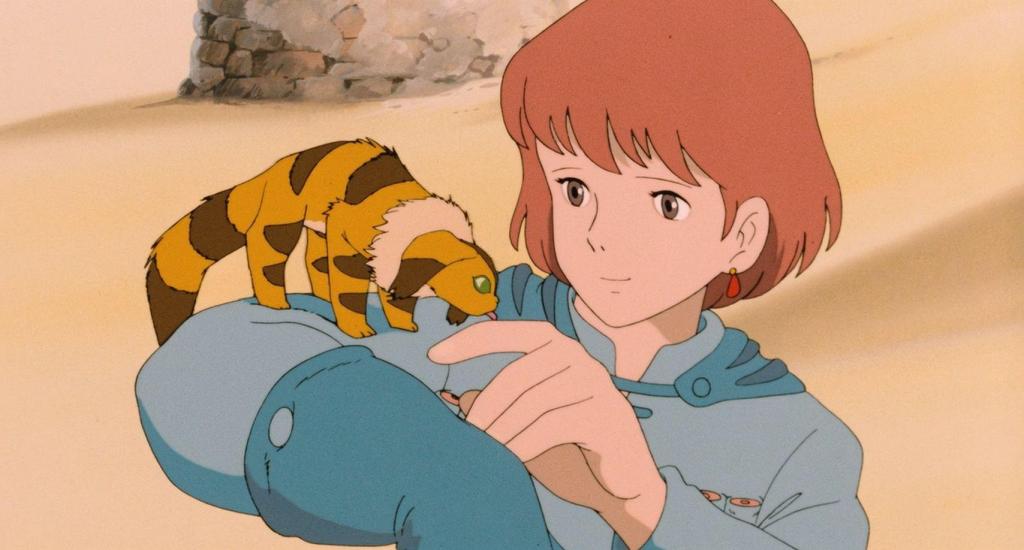 Yupa thanks her for saving him and introduces her to a new animal he has discovered in his own travels: a striped yellow mammal he calls a “fox squirrel” (I would describe it as more of a cat/hyena hybrid, but that’s just me). The animal is initially hostile, biting Nausicaä’s finger when she reaches out. She remains calm, however, and soon the fox squirrel warms to her. It becomes her pet, spending the rest of the movie following her around.