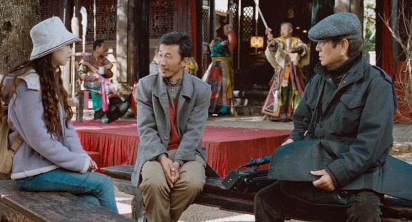 Occasionally the movie breaks from this pattern and features some memorable images: a row of tables at a village banquet that stretches on seemingly without end; a rural region filled with monumental rock formations and canyons; and, of course, Chinese opera performers. We also get recurring shots of characters framed against the sky that are dramatic and poignant.