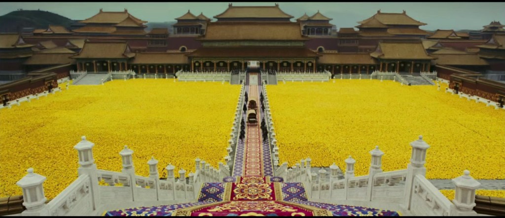 Curse of the Golden Flower (2006) is Zhang Yimou’s third foray into the wuxia genre. The movie differs from its predecessors in two notable respects, though.