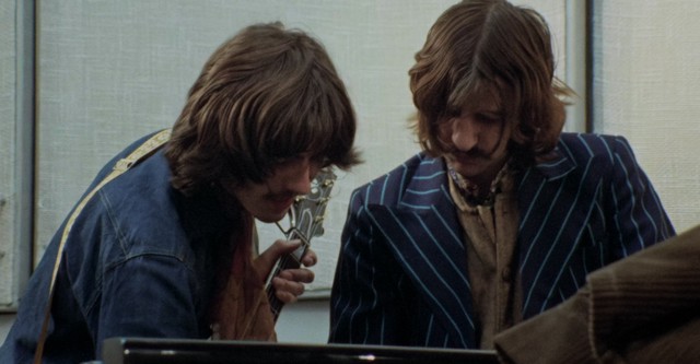 Roughly a third of the way through, the action shifts from the original set up at Twickenham film studios to a studio at Apple headquarters. Here the Beatles are joined for their jam sessions by keyboardist Billy Preston. Over the course of these scenes at Twickenham and Apple, we hear the Beatles perform all the songs that would eventually be featured on the album Let It Be, as well as a few songs that ended up on Abbey Road and various covers of non-Beatles songs.